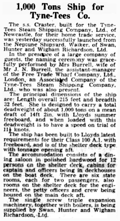 CRASTER launch: Shields Daily Gazette, Friday, 03/05/1935