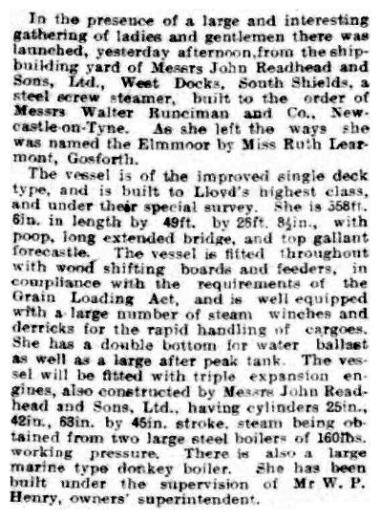 | Engines by: | John Readhead & Sons Ltd, South Shields |