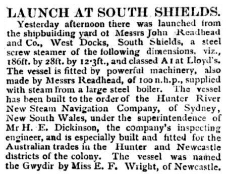 | 03/11/1886 | Hunter River New Steam Navigation Co, Sydney, NSW |
