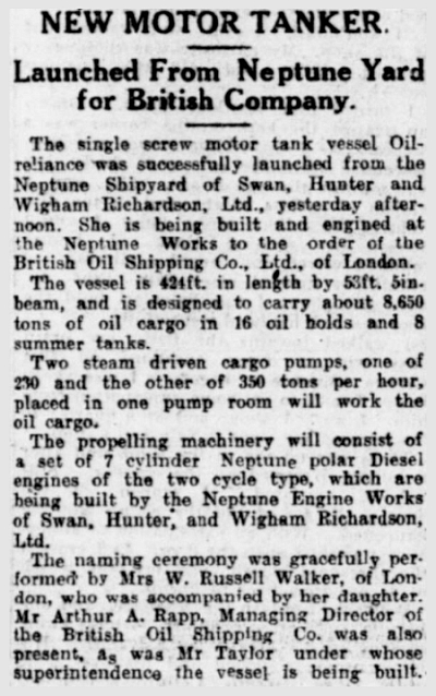 | 07/01/1929 | British Oil Shipping Co Ltd (AA Rapp), London |