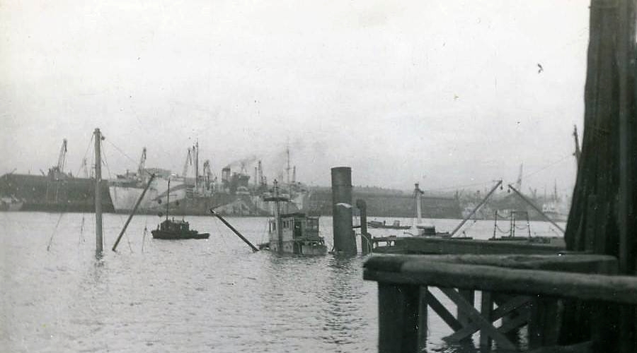 Above: OLAVIS sank near Middle Docks in September 1944. Photo by Miss Amy Flagg