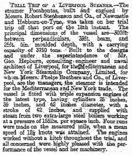 | 25/04/1889 | Mediterranean & New York Steam Ship Co Ltd (Phelps Bros), Liverpool |