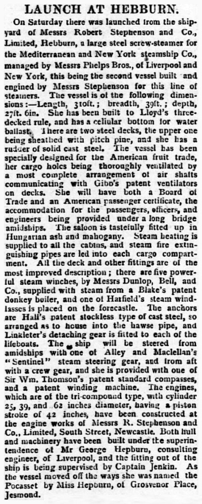 | 06/1889 | Mediterranean & New York Steam Ship Co Ltd (Phelps Bros), Liverpool |