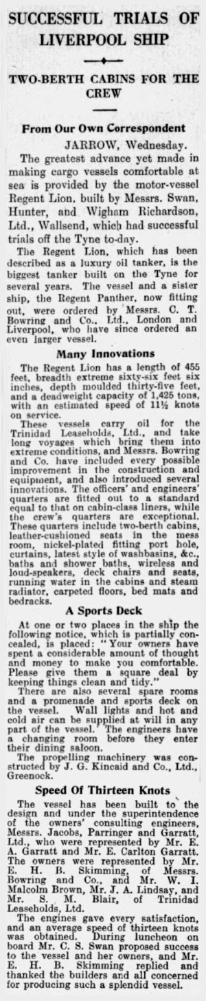 | 20/03/1937 | Bowring Steamship Co Ltd (CT Bowring & Co Ltd), London |