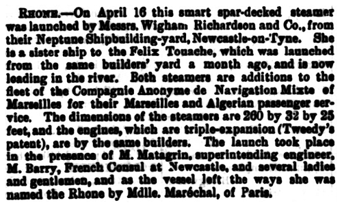 | 25/05/1889 | Compagnie de Navigation Mixte, Marseilles |