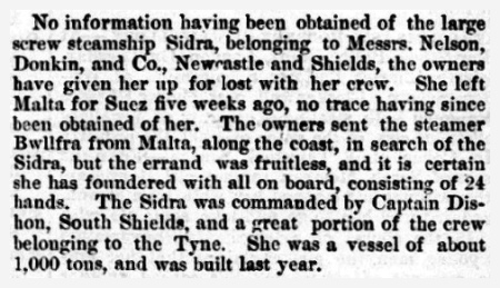 | Comments: | 05/02/1874: Sailed from Malta & subsequently posted missing |