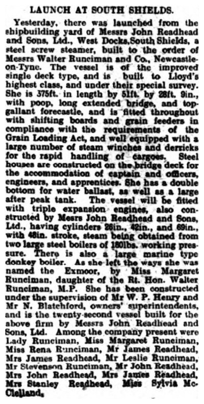 | Engines by: | John Readhead & Sons Ltd, South Shields |