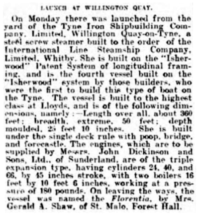 | 15/03/1912 | International Line Steamship Co Ltd (Christopher Marwood), Whitby |