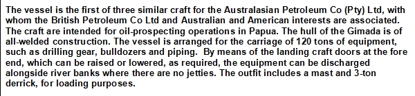 | 1960 | Pacific Island Barges Ltd, Port Moresby |