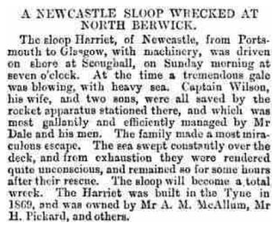 | Comments: | 29/11/1874: Driven ashore at Scoughall near North Berwick |
