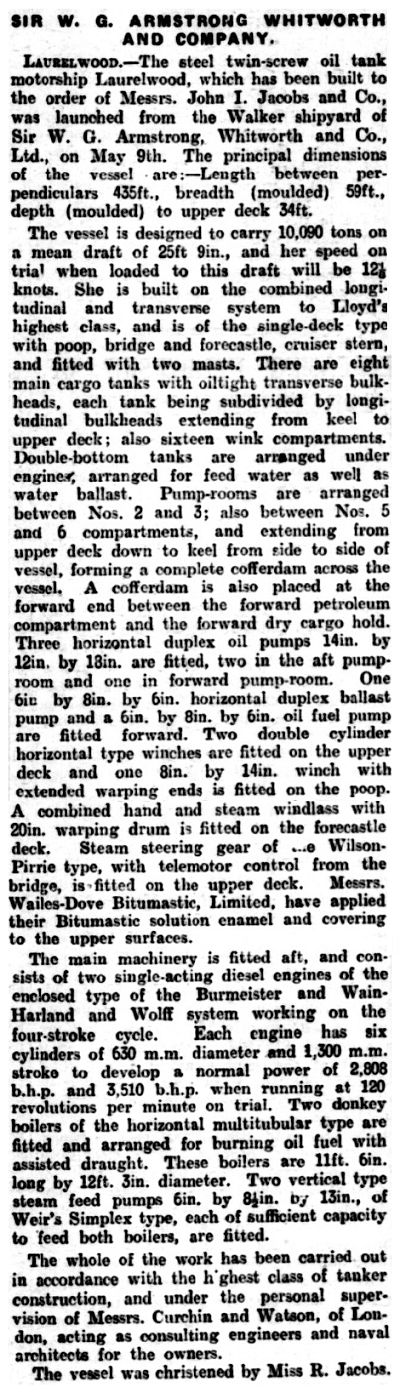 | Engines: | 2 x Oil engines, H&W-B&W type, 4SCSA, 6cyl (630 x 1300mm), 709nhp |