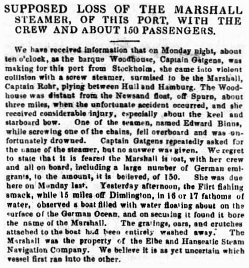 | 28/11/1853: Sank in the Humber with the loss of about 170 persons |