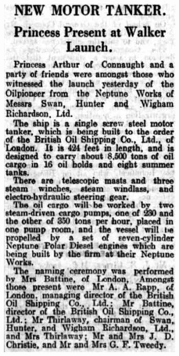 | 02/11/1928 | British Oil Shipping Co Ltd (AA Rapp), London |