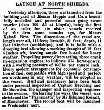 | 1897 | Kelsall Bros & Beeching Ltd, Manchester; registered at Fleetwood |