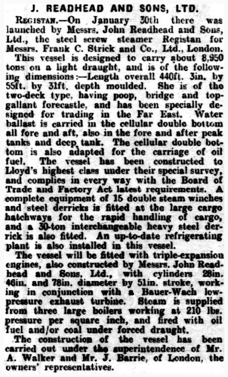 | 14/03/1930 | Strick Line (1928) Ltd (FC Strick & Co Ltd, managers), London |