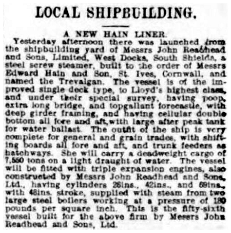 | 28/08/1911 | Hain Steamship Co Ltd (E Hain & Son), St Ives |