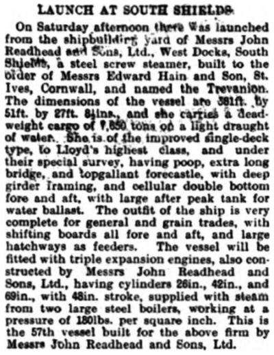 | 09/04/1912 | Hain Steamship Co Ltd (E Hain & Son), St Ives |