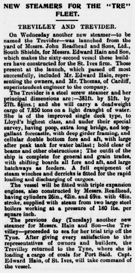 | 14/05/1913 | Hain Steamship Co Ltd (E Hain & Son), St Ives |